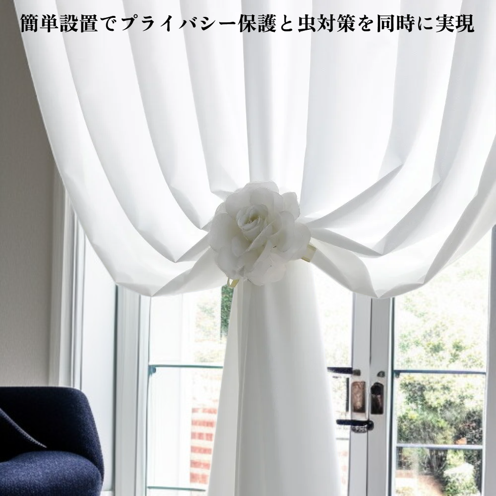 家庭や宿泊施設向け防虫ネットと透け防止カーテンは、プライバシー保護と虫の侵入防止を両立。簡単設置で快適な空間を実現。